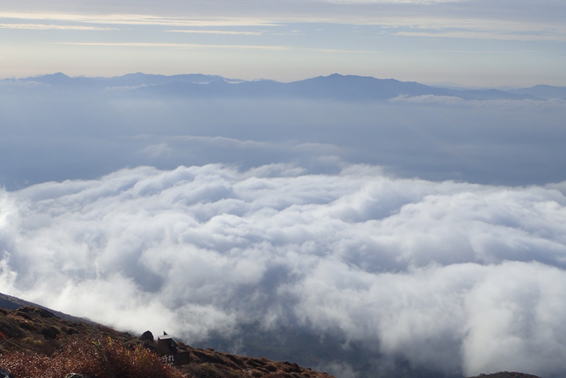 雲海を眺めながら暫し休憩 8時29分 ボーッと座るのが至福の時間 |