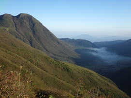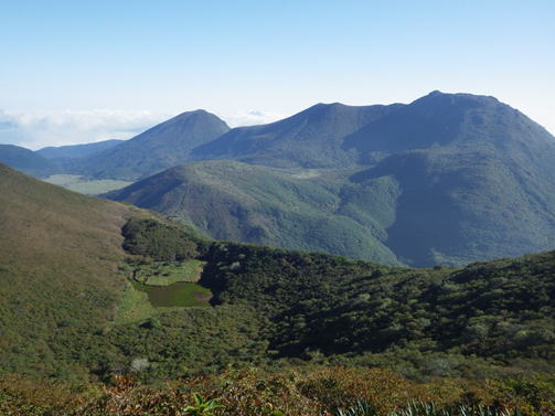 鳴子山の稜線から大船山方面を望む 8時22分 左下には片ヶ池が見える