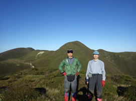 | この二日間で1700m超の10座(三俣本峰・三俣南峰・北大船・大船・白口・稲星・久住・中岳・天狗ヶ城・星生)を含む合計19の山頂を踏んだ。あいにく肥前ヶ城と岩井川岳の2座が立入禁止と言うことで、計画通り21の山頂を踏むことは出来なかった。とても残念だったが、二日目後半はかなり疲れていたのでそれでよかったのかもしれない。一日目の最初に挑んだ濃霧の三俣山五峰を終えた時、気象条件も最悪で私は疲労困憊、諦めムードだった。しかし、パートナーのM原君の最後まで諦めない先導で、このチャレンジ21を完遂することが出来たと思う。一人では決して歩き通してはいないだろう。当分はまた、風景や花の撮影を楽しみながらのんびり山を歩きます。パートナーに感謝!お疲れ様でした。 |