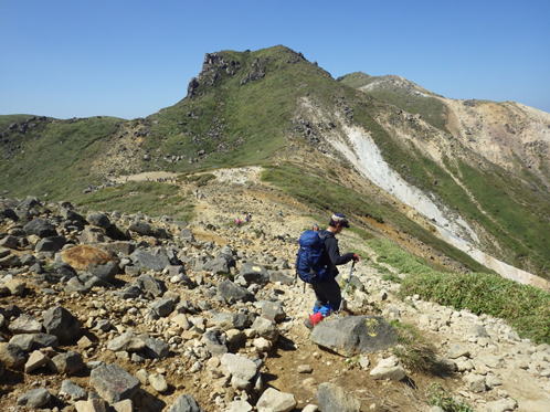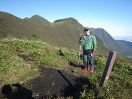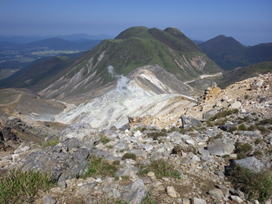 36、星生山 13時25分 1762m 数人の方が休憩していた。右下には硫黄山が活動している。以前に比べると噴煙の量が少ないような気がするが・・・。 17座目 |