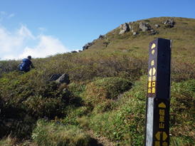 稲星山と久住山の鞍部の分岐 9時47分 |