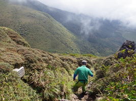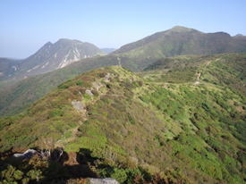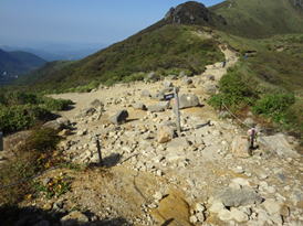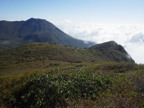 稲星山から久住山への道 9時36分 右下は東千里ヶ浜