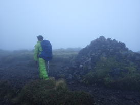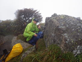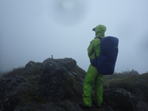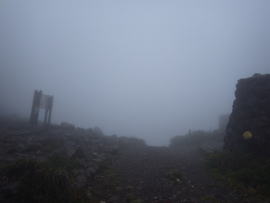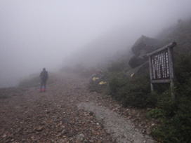 すがもり越えから三俣山方面を見上げる 6時36分 視界は10メートル位だろうか?