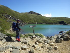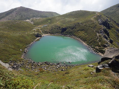 左奥は稲星山。御池の右上の稜線にはお弁当を食べた慰霊碑が黒い点となって確認出来る。