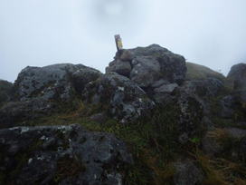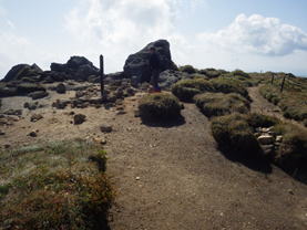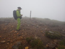 40、扇ヶ鼻 14時28分 1698m 扇ヶ鼻では白いロープが張り巡らされている。おかげで山頂への道は分り易いが、かなり制限されている。誰もいない山頂に到着。 18座目 |