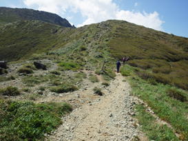 久住山からの道と合流、久住分れへと急ぐ 12時29分 これから上る星生崎が迫ってくる