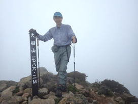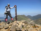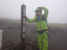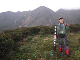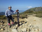 32、中岳 11時52分 1791m 九州本土最高峰の中岳に登頂!最高の気分に浸る。背景の三俣山には雲一つ無く、昨日の霧がまるでウソのようだ! 15座目 |