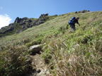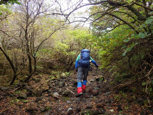 星生崎に挑む前に休憩 12時34分 トイレのある広場には下りず、そのまま星生崎を目指す。でもその前にこれからの急登に備えてちょっと休憩。 急登を一歩、一歩 |