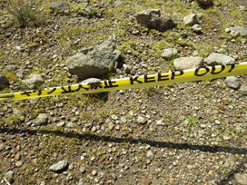 キケン 立入禁止 KEEP OUT なんと言うことだ!黄色のテープが入山を阻んでいた。以前は普通に入山できた肥前ヶ城は現在「立入禁止」になっていた。 トボトボと戻る |