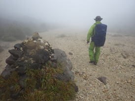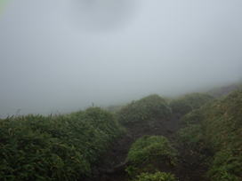 17、段原 15時46分 大船山からも霧で何も見えなかった。せっかくの景色を見る事が出来ず残念だ。結局今日は霧に悩まされる一日となった。 坊ヶツルへ下る |