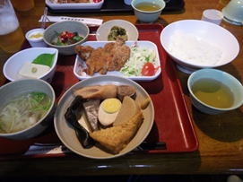満席の夕食風景 18時05分 各テーブルで「乾杯!お疲れ様!」と言う声が飛び交う
