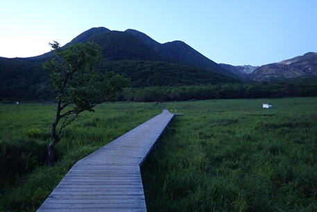木道から平治岳を望む 6時54分 |