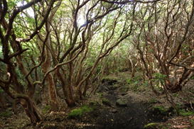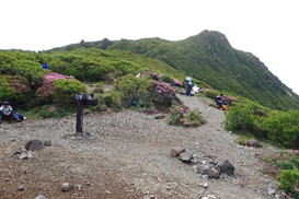 下山ルートはどうしよう?雨ヶ池コースで戻っても良いが、三俣山西峰斜面のミヤマキリシマも気になるし・・・と言うことで法華院温泉山荘の裏からスガモリコースで長者原に戻ることにした。 |