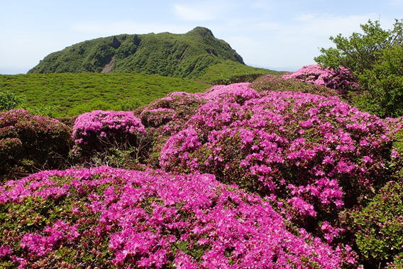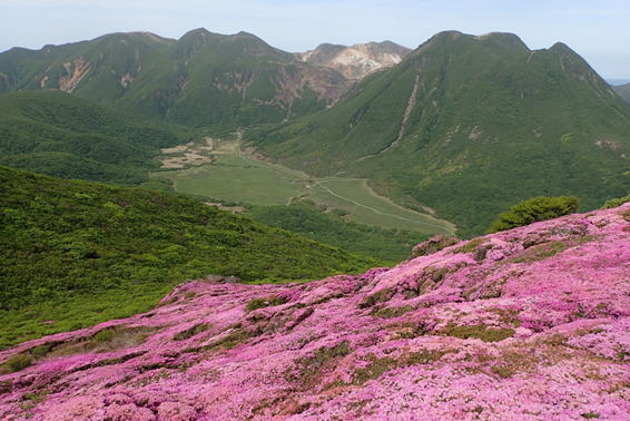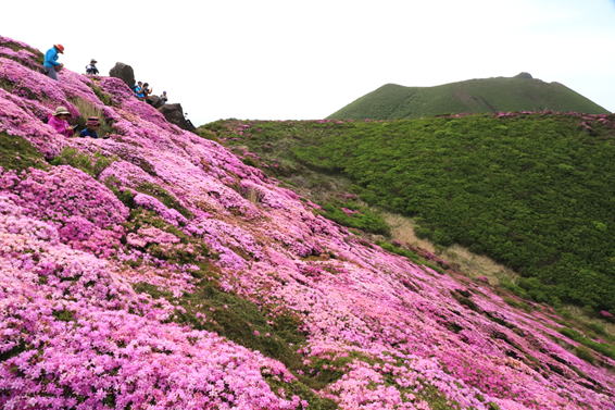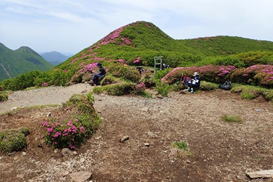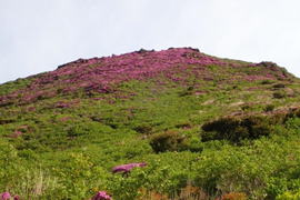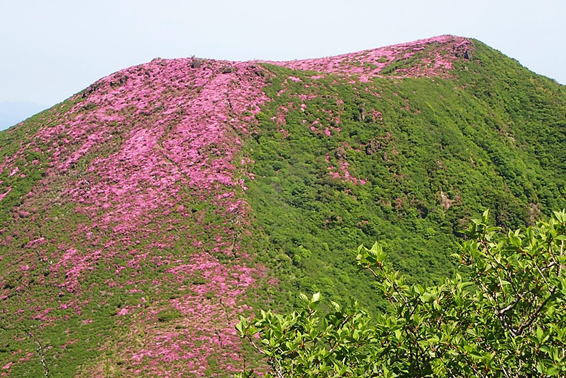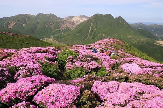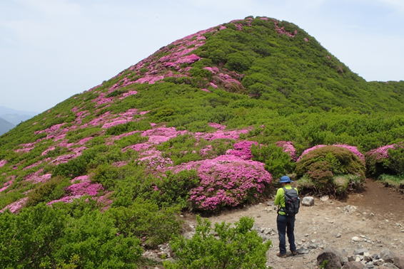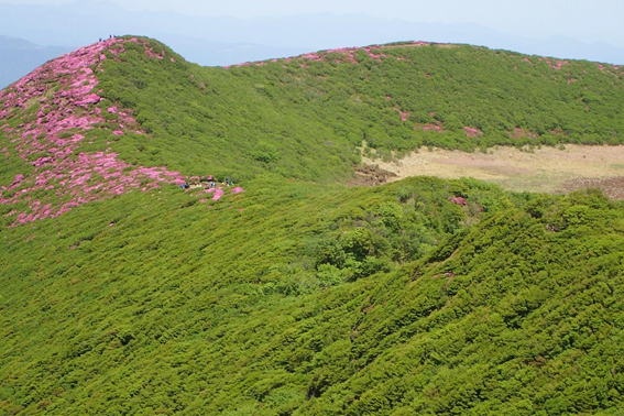 ここから見る北大船山のミヤマキリシマはほぼ満開のように見える 11時26分 |