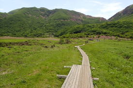 ![]() 木道を歩き法華院温泉山荘方面へ13時35分 |