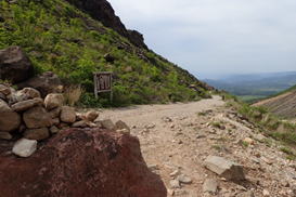 平治岳では九州の自然を守る会が「一人一石運動」を行っている。ぬかるんだ登山道に石を置く運動である。私も小石を10個程持って歩くことにした。 |