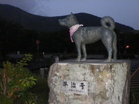 満足して下山開始 11時00分 10分程休憩して山頂に別れを告げた。 犬も登頂 |