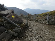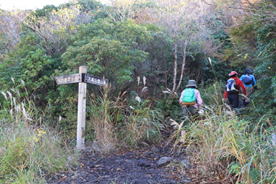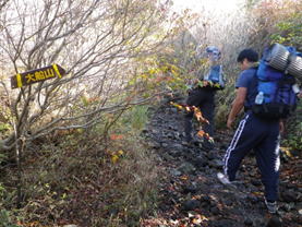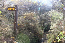 スガモリ峠まで もうひと上り 13時32分 硫黄の匂いが強くなってきた。遠くから鐘の音が聞こえてきた。 |