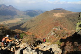 | 長者原〜雨ヶ池〜坊ヶツル〜大船山〜御池〜北大船山 法華院温泉山荘〜北千里浜〜すがもり峠〜三俣山西峰〜長者原 |