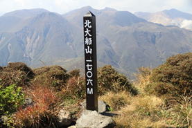 9、北大船山山頂 11時18分 1706m 細い登山道を少々藪漕ぎしながらもすぐに山頂へ。のんびりと私の好む静かな山頂だった。 |