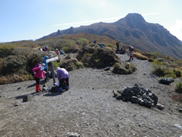 スガモリ峠 14時29分 三俣山西峰から15分かかってスガモリ峠に下ってきた。水分補給をしてガレ場に向かう。 さあ下山 |
