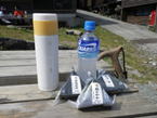 ベンチで昼食 12時37分 既に食事中の単独登山者に同席をお願いして座ることが出来た。お腹ペコペコ。 |