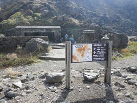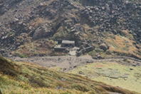 管理休憩舎を右に見て進む 8時16分 ここで休憩しようと思ったが、早く頂上に登りたいという気持ちには勝てず、そのまま登山口へ向かった。 |