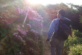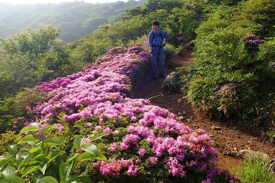 ミヤマキリシマ咲く登山道 7時09分 |