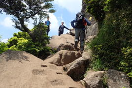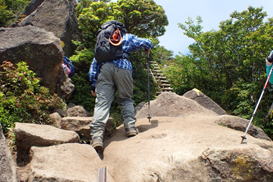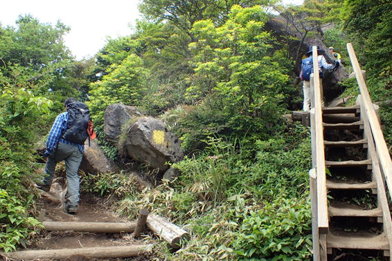 ここから木段を少し上ると沓掛山山頂までは岩場の尾根歩きになる。 |