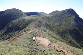 御池から久住山に向かう途中で、静かな山中に突然エンジン音が鳴り響いた!