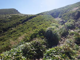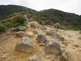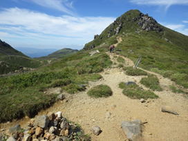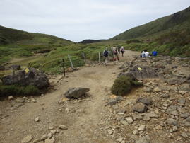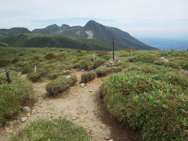 扇ヶ鼻への登山道 13時12分 ペースが落ちているのか?足の速いご夫婦に抜かれてしまった。振り返ると星生山。 星生山 |