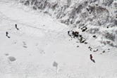 星生崎から下を覗き込むと・・・ 10時25分 避難小屋周辺に人影が動く
