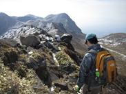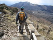 天狗ヶ城を出発 11時30分 これより、天狗ヶ城に別れを告げて、写真左上の久住山へ向かう。 20代半ばくらいだろうか? |