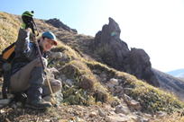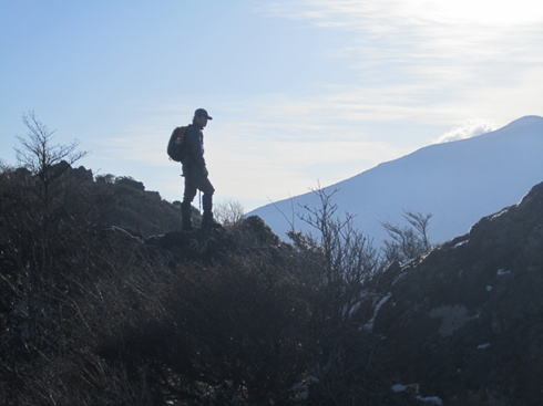 沓掛山岩峰、朝日を浴びて佇む山男・・・(笑)