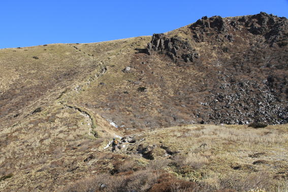 ここからが勝負! 急登を上り、右上の星生山山頂を目指す。