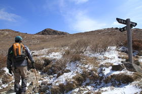 8、久住分れ 10時07分 風がとても強く、手もかじかんで体が冷えてきた。 |