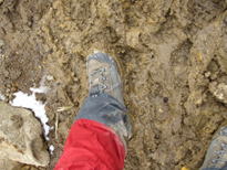 16、西千里浜を歩く 13時22分 登山道は黒土ドロドロのぬかるみ状態。