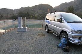 明神溜池横の駐車スペース |