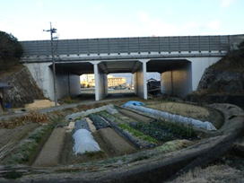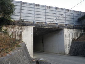 中国自動車道下のガード 8時11分 左手に「山口27」の高速道下ガードが見えてくる。 ここから右に曲がって山手方向に進む。 これが目印 |