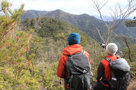 8、狐ヶ峰への分岐地点で、歩いてきた魚切山、天狗岩山を振り返る 13時25分