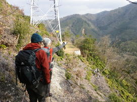 116番鉄塔に到着 14時57分 ここから眺める魚切山はとても美しい。 鉄塔の右横を歩いて先へ進む。 絶景 |