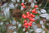 シダの覆い茂る斜面を下る 15時03分 ナンテンの実も真っ赤になって自己主張し、登山道を彩っている。 鮮やか |