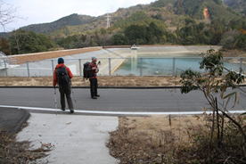 U字に凹んだ道を歩くと・・・ 15時10分 進行方向が明るくなり明神溜池が見えてきた。 無事帰還 |