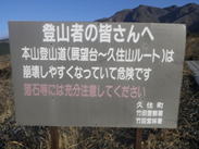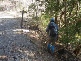 ![]() 看板の左が稲星越、右に進むと鳴子山 |