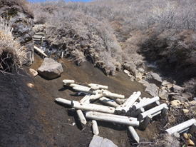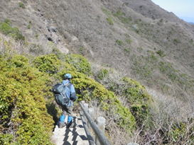 木段を下って佐渡窪へ 14時06分 |