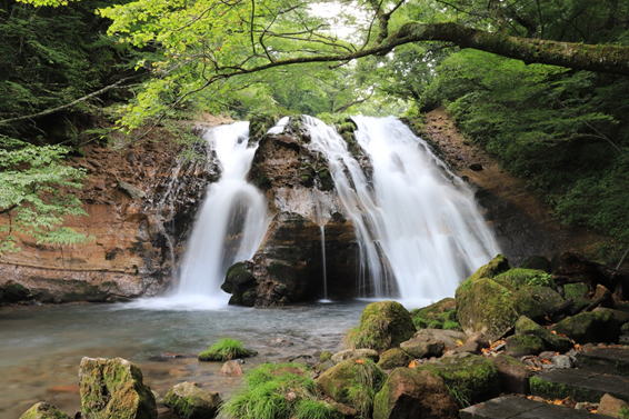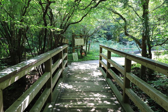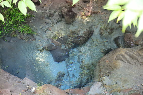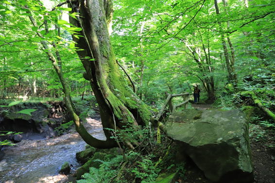 この静かな川の流れが、「名水の滝」では激しい滝へと変わる。 |