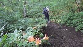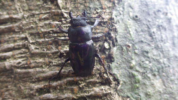 他の登山者に踏みつけられてもいけないので、クワガタをレスキューして近くの木にとまらせた。自然豊富な森には昆虫もたくさん生息しているのだろう。 |
