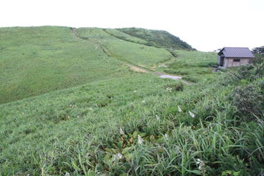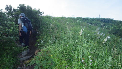 山頂直下はお花畑 8時28分 オオバギボウシが咲き乱れている