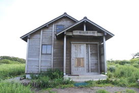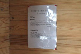 小屋の中に注意喚起の貼紙 |