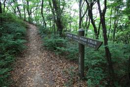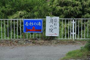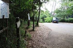 若杉山 奥の院への標識 7時03分 車道を進んで行くと奥の院への標識が目に入る。